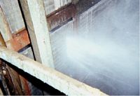 Less than 5 gallons of waterflow per minute. Unrated LOW psi. Sporadically covering an area less than 1ft. With LOW waterflow and LOW pressure.